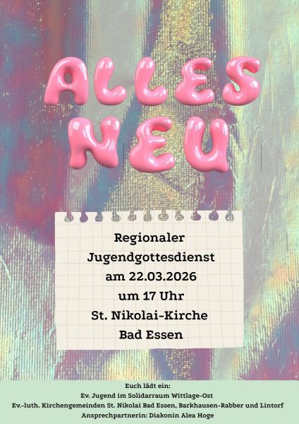 Alles neu - Regionaler Jugendgottesdienst am 22. März in St. Nikolai