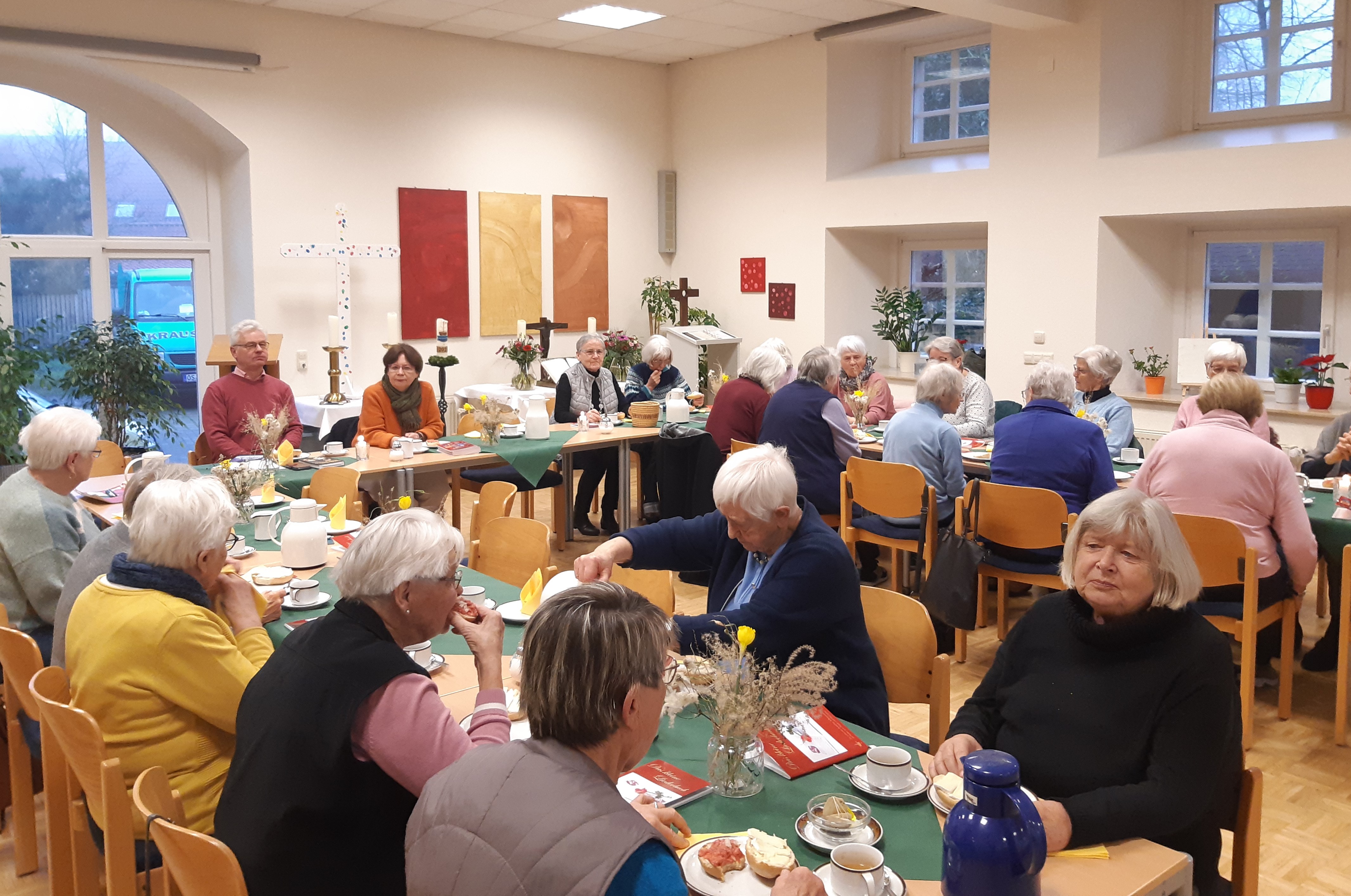 Das gemeinsame Essen findet sich an vielen Stellen in den Evangelien. Jesu Verwandlung von Wasser zu Wein, seine Vermehrung der Brote oder das letzte Abendmahl: Das Essen ist in zweifacher Hinsicht lebensnotwendig: Es stillt den Hunger und stiftet Gemeinschaft. Seit nunmehr einem Vierteljahrhundert bietet das Frauenfrühstück die Gelegenheit, Bekanntschaften und Kontakte zu pflegen. Es gibt Kaffee, Tee und belegte Brötchen. Ein kleiner Kostenbeitrag wird nach der Veranstaltung eingesammelt. Bei Interesse melden Sie sich bitte vorher im Pfarrbüro, Tel. (05472) 4375 oder bei Angelika Haasis, Tel. (05472) 954208 an.